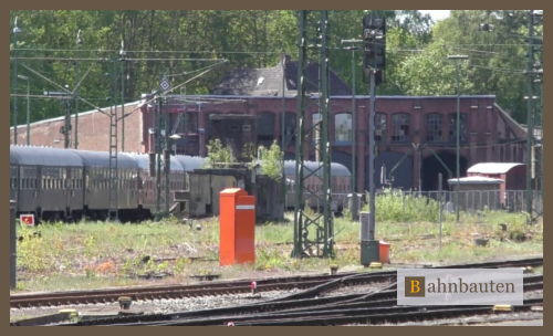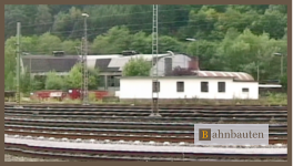 TreysaDas Bahnbetriebswerk (BW) wurde 1908 in Betrieb genommen. Es verfügte über einen 18-ständigen Ringlokschuppen aus rotem Klinker und einer 16 Meter Drehscheibe, die später durch eine 23 Meter Drehscheibe ersetzt wurde. Am 27. Mai 1967 legte die Deutsche Bundesbahn das BW still.FinnentropDas Bahnbetriebswerk wurde 1901 in Betrieb genommen. Es verfügte zunächst über vier Lokstände, die 1921 erweitert und mit einer 20-Meter-Drehscheibe ergänzt wurde. 1982 schloss die Deutsche Bundesbahn das Bahnbetriebswerk. Links im Bild die Wagenausbesserungshalle.Saalfeld (Saale)1871 wurde eine Lokstation eröffnet und 1897 zum Bahnbetriebswerk ausgebaut. 1905 besaß es einen 16-ständigen Ringlokschuppen mit Drehscheibe. Der Lokschuppen wurde 1905 auf 24 Ständen erweitert. Am 1. Mai 2015 löste die Deutschen Bahn AG das Bahnbetriebswerk auf und bot es 2016 das zum Verkauf an. Lichtenhain an der BergbahnDer auf einem Hochplateau im Thüringer Wald liegende Bahnhof ist die Endstation der Oberweißbacher Bergbahn. Direkt gegenüber der offenen Bahnsteighalle befindet sich ein Dienstgebäude mit angebautem Güter- und Lokschuppen aus Fachwerk von 1924. Hier konnte ein Schienenfahrzeug über eine 8,5 Meter-Drehscheibe in den Lokschuppen fahren.